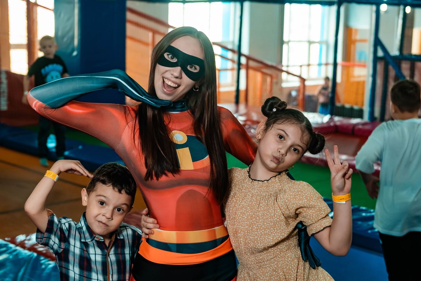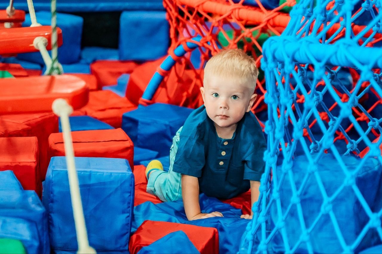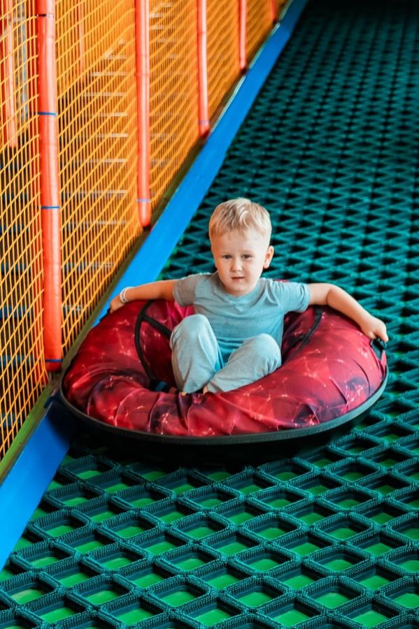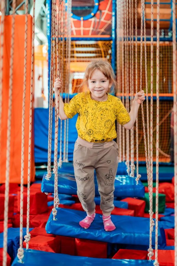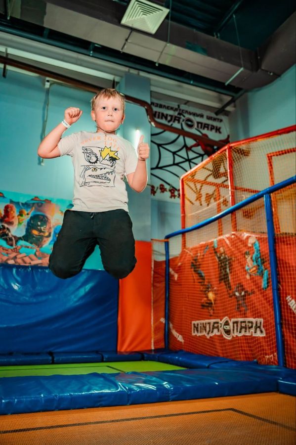 Батутная арена из 16батутов (3 на 3 метра и 3 на 5 метров AirMax), поролоновая яма, подиумы для прыжков, 6 метровый скалодром с профессиональными зацепами, балансборд, тюбинговая горка, НИНДЗЯ КВЕСТ (9 полос препятствий), троллей, трехуравневый лабиринт, зона Бебиленд, аттракцион "7D КИНОТЕАТР", раздевалка со шкафчиками,фотограф занимающийся изготовлением фотомагнитов, комнаты для проведения дней рождений, индивидуальное сопровождение несовершеннолетних детей.