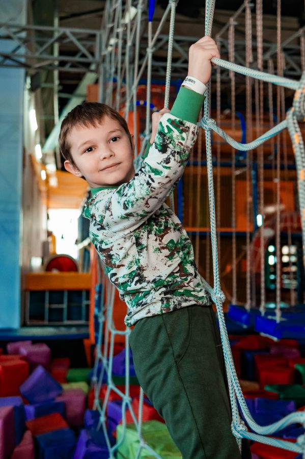 Имеет 3 уровня сложности, отлично подойдёт для настоящих любителей приключений! Нижний ряд конструкции заполнен поролоновыми кубиками, для безопасности и различных игр!